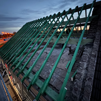 - Afbraak pannen en volledige dakstructuur aangetast door houtworm